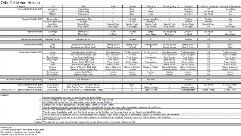 Zeigt, welche Orbeffeckte von Helden mit welchen Items wie stacken.